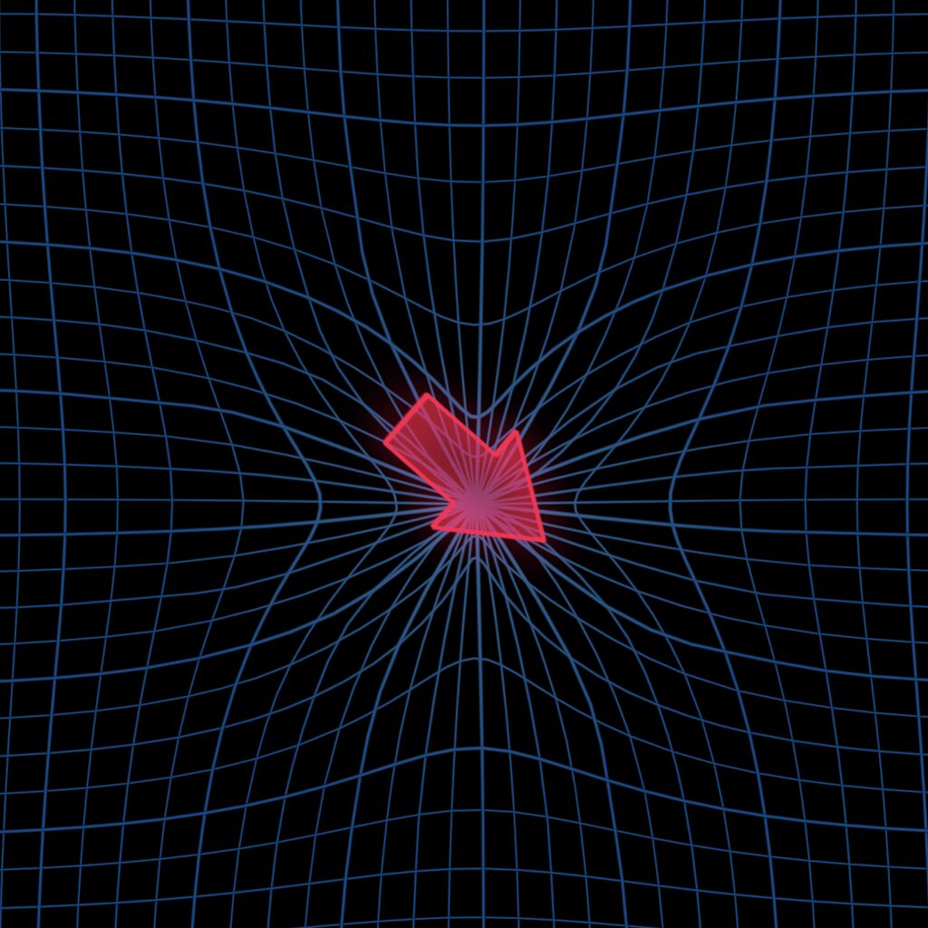 Move around the spacetime grid and grab matching shapes: get close and dislodge them from their positions with gravity, while avoiding all arrows. These always fall towards your gravitational field: if they touch any shapes you’ve grabbed, the grid will reclaim all shapes, and you’ll have to grab them again.